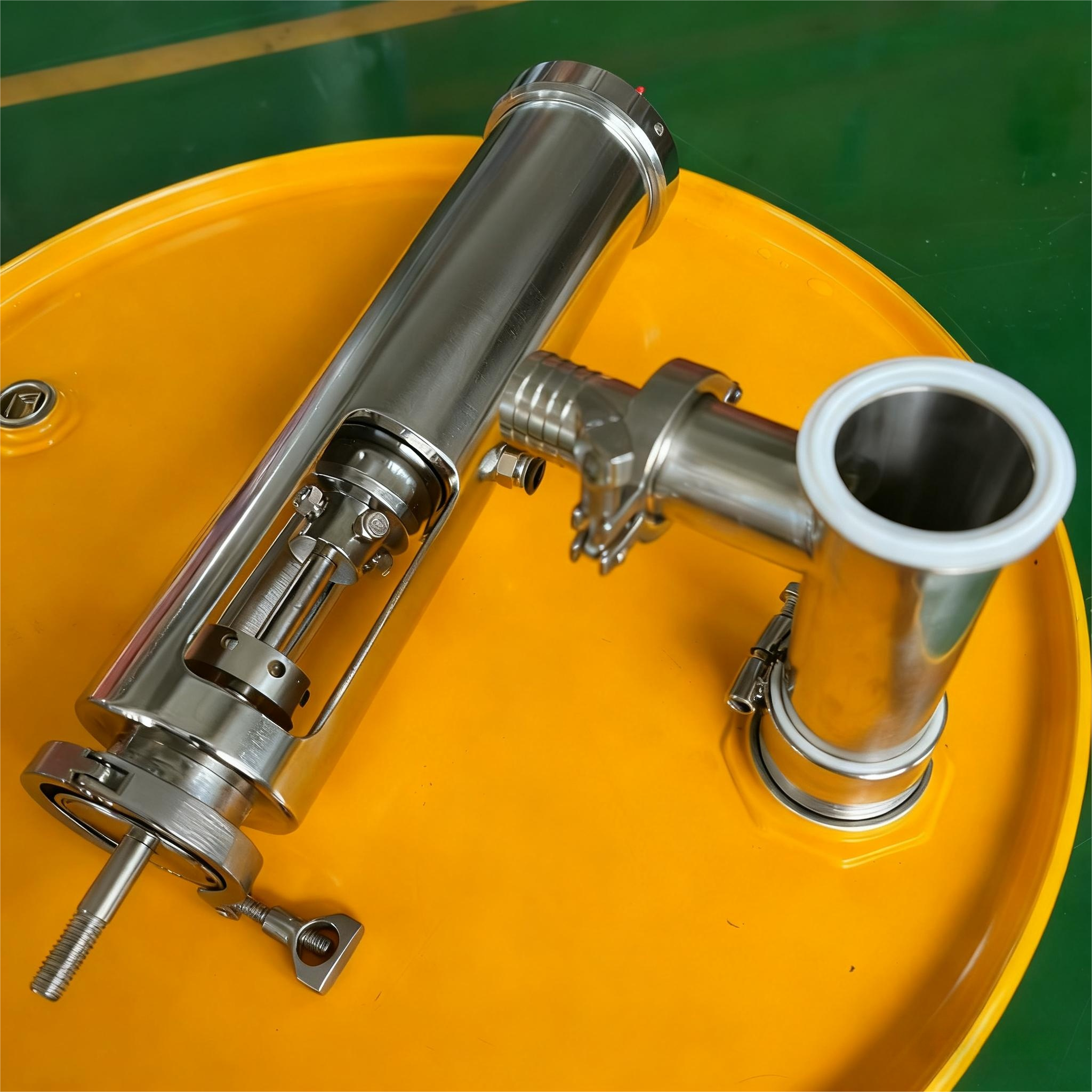(1) First insert the entire pump hose into the barrel to be transported, maintaining as vertical an orientation as possible.